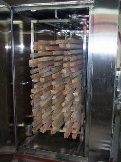 2、剝掉樹皮時,也有采用條狀或環(huán)狀剝皮,讓木材水分逐漸蒸發(fā),減緩干燥速度。